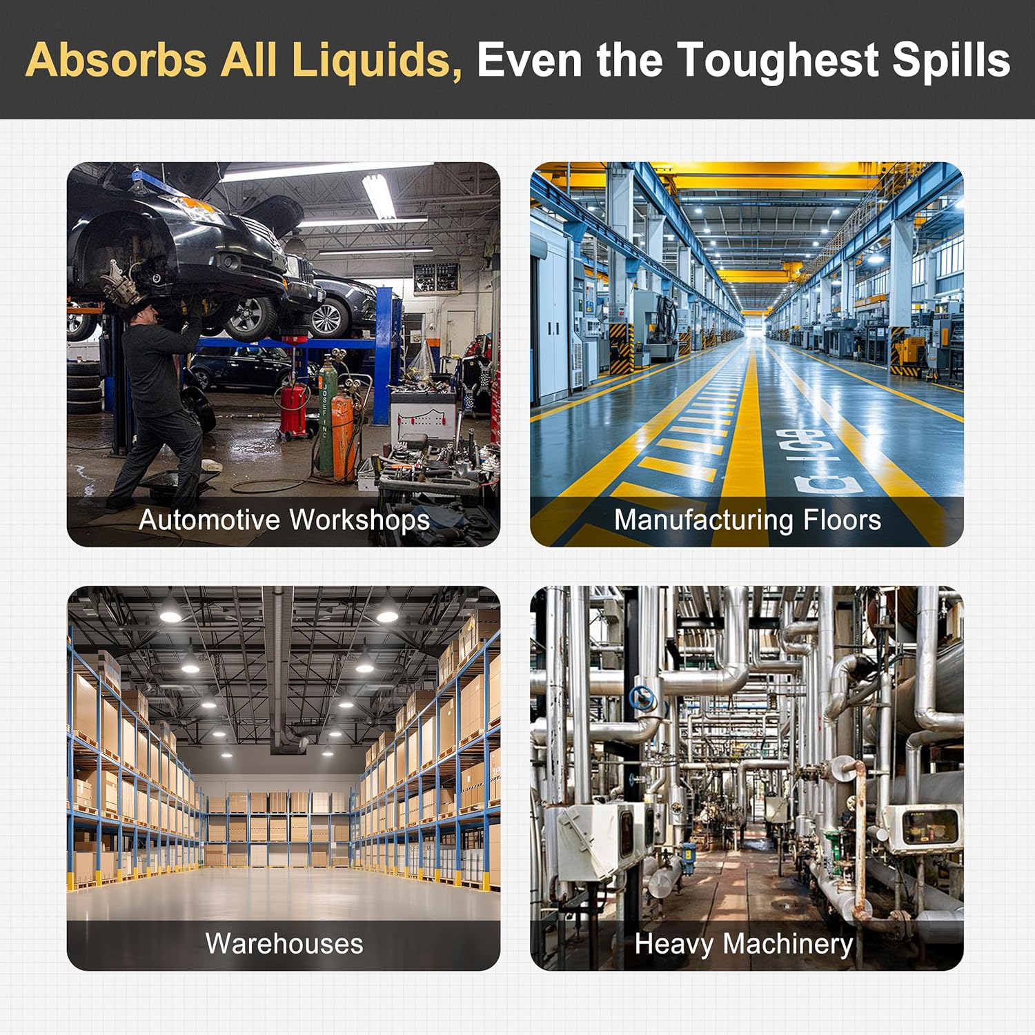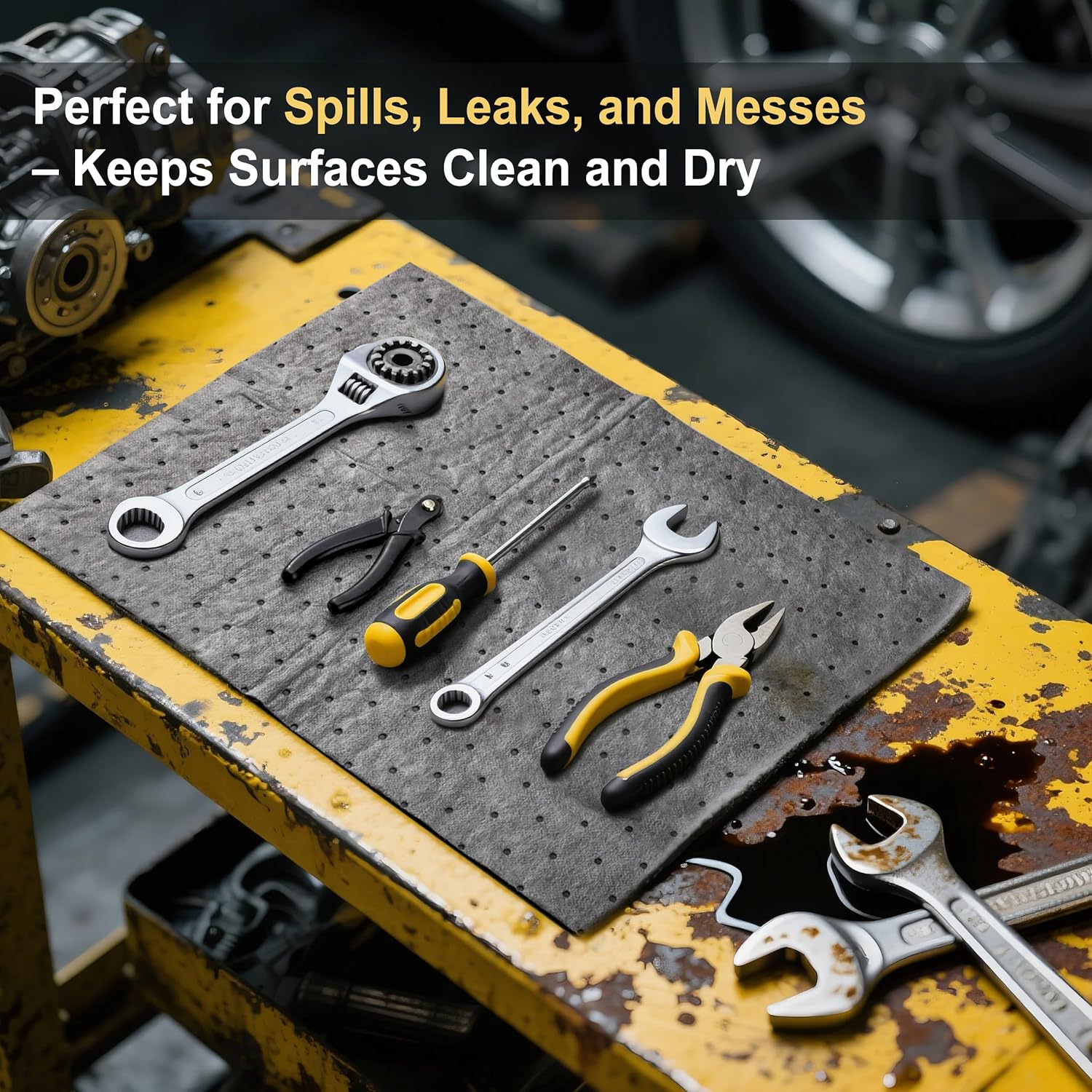 - Wide Applications: These oil absorbent mats are perfect for use in garages, basements, workshops, kitchens, industrial environments, marine settings, and more. Suitable for both oil and water absorption, they work effectively as oil mats in various settings